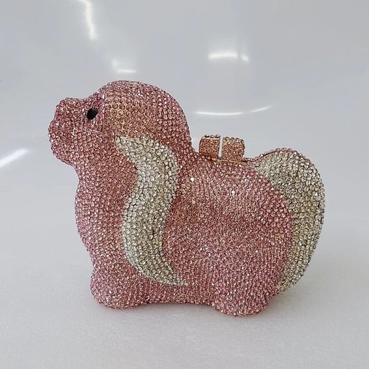 Crystal Embellished Puppy Rhinestone Clutch
